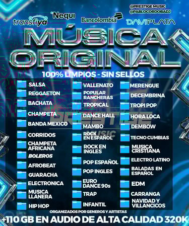 Lista para ser usada, puedes reproducirla en tu auto, TV, parlante, bar, restaurante, computador o donde tú quieras el formato es MP3.