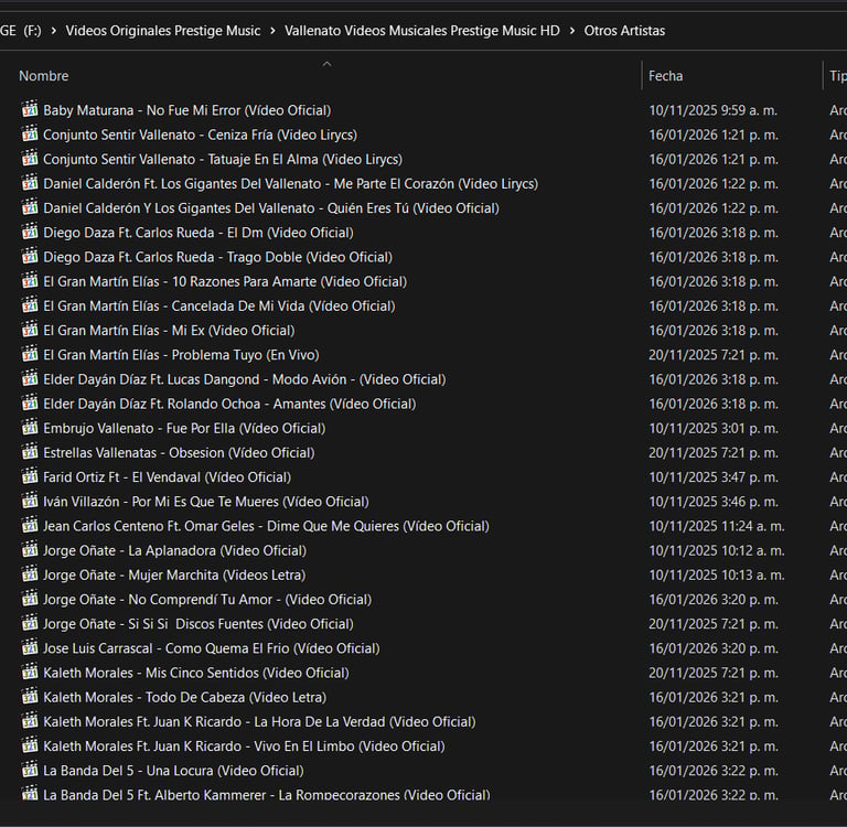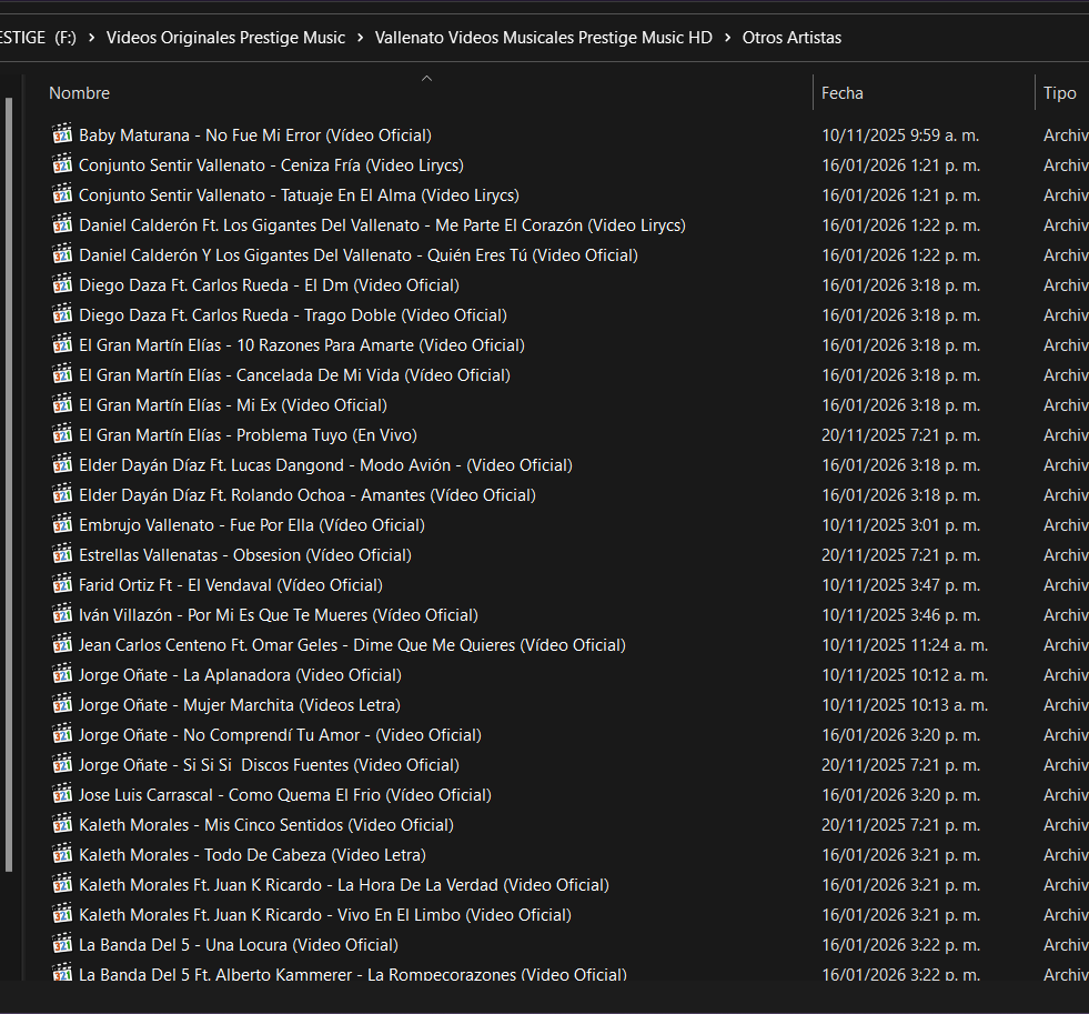 Videos en formato MP4 full HD actualizados y organizados por géneros y artistas